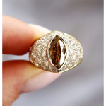 2 Ct Fancy Brown Marquise & Round Lab Grown Diamond Ring with Pave Accent Lab Diamond in Yellow Gold