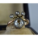 Antique Crown Ring with Rose Cut Lab Grown Diamonds in 18K Gold, Vintage Style Engagement Ring