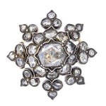 Antique Rose-Cut Lab Grown Diamond Floral Starburst Brooch, Silver-Topped Gold Vintage Heirloom Brooch