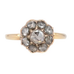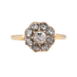 Antique Rose Cut Natural Diamond Cluster Ring in 18K Yellow Gold, Vintage Flower Design Engagement Ring
