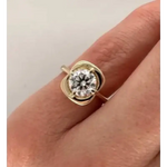 Artistic Round Brilliant Cut Lab Grown Diamond Ring in 14K Yellow Gold, Minimalist Geometric Design