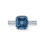 Asscher Cut Blue Lab Grown Diamond Engagement Ring, in Princess Cut Side Stones For Wedding