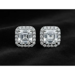 Asscher Cut Halo Lab Grown Diamond Stud Earrings in 14K White Gold, Elegant Bridal Jewelry Gift for Her