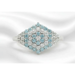 Blue and White Lab Grown Diamond Cluster Ring in 14K White Gold, Hexagon Style Halo Engagement Ring
