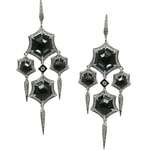 Celestial Starburst Black Natural Diamond Chandelier Earrings in White Gold, Bold Statement Earrings
