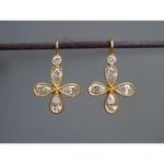 Lab Grown Diamond Cross Drop Earrings with Pear & Round Cuts in 18K Yellow Gold, Vintage Religious Earrings