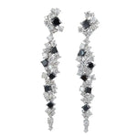 Natural Black and White Lab Grown Diamond Cascade Drop Earrings in White Gold, Modern Luxury Statement Earrings