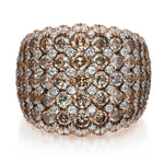 Natural Brown and White Lab Grown Diamond Dome Ring in 18K Rose Gold, Pave Cluster Wide Band Luxury Men Ring Gift
