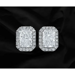 Radiant Cut Halo Lab Grown Diamond Stud Earrings in 14K White Gold, Elegant Bridal Jewelry Gift for Her