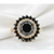 Round Black Narural and White Lab Grown Diamond Halo Ring in 14K Yellow Gold, Vintage Cluster Engagement Ring