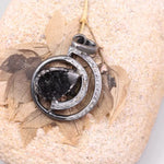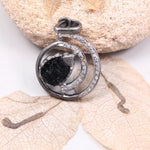 Art Deco Black Stone Teardrop Pendant Necklace – Natural White Diamond & Silver Circle Design, Handmade Unique Jewelry Gift