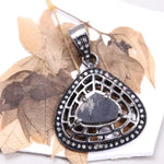 Art Deco Inspired Sterling Silver Pendant – Pear Cut Natural Black Diamond, Antique Gothic Jewelry Gift