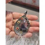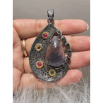 Art Deco Sterling Silver Pendant – Handmade Amethyst Teardrop with Pink Ruby & Emerald Accents | Unique Jewelry Gift