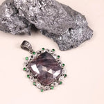 Art Deco Style Pendant – Large Purple Gemstone with Silver, Green & Black Diamond Accents | 18th Century Inspired Jewelry Gift
