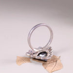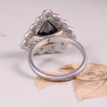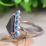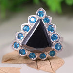Art Deco Style Ring – 925 Sterling Silver Engagement Ring with Trillion Cut Black Moissanite & Blue Topaz Stones, Unique Anniversary Gift
