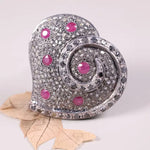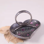 Art Deco Style Ruby Heart Silver Ring – July Birthstone Promise Ring, Dainty Red Gemstone Vintage Antique Jewelry