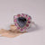 Art Deco Style Silver Cocktail Ring – Black Moissanite Trillion Cut with Pink Sapphire & Ruby Halo, Unique Statement Jewelry for Women