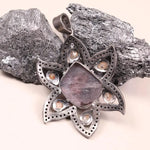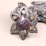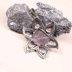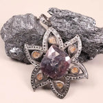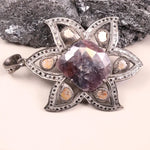Art Deco Style Silver Pendant – Large Purple Gemstone Handmade Statement Jewelry | Antique Flower Pendant, 19th Century Gift