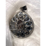Natural Black Pear Cut Pendant – 1985s Antique Victorian Sterling Silver Jewelry | Old Style Statement Silver Pendant for Her