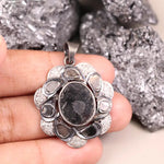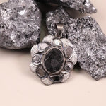 Oval Black Stone Pendant – Victorian Sterling Silver Floral Boho Gothic Necklace, Handmade Unique Statement Jewelry