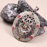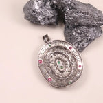 Victorian Oval Cut Pendant – Pink & Green Ruby Diamond Sterling Silver Antique Style Jewelry Gift