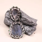 Victorian Purple & Blue Gemstone Pendant – Sterling Silver Antique Diamond Jewelry | 18th Century Inspired Unique Pendant Gift