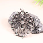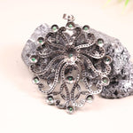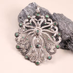 Victorian Style Filigree Silver Pendant – Green Emerald 19th Century Antique Jewelry | Unique Necklace Jewelry Gift