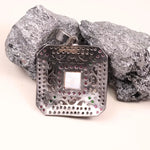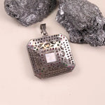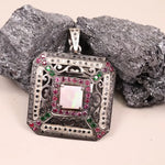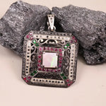 Victorian Style Opal Pendant – Sterling Silver Square Necklace with Ruby, Emerald & Black Diamond Accents | Unique Statement Jewelry Gift