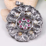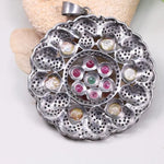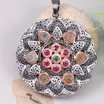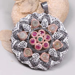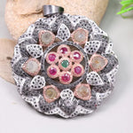 Victorian Style Pink Ruby & Green Diamond Pendant – Sterling Silver Natural Diamond Jewelry Gift