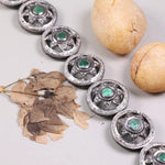 Vintage 1995 Green Gemstone Bracelet – Emerald Art Deco Sterling Silver Star Design, Elegant Handmade Unique Jewelry