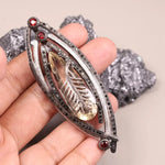 Yellow Pear Shape Gemstone Pendant – Art Deco Style Silver Pendant with Black Natural Diamond, Unique Vintage Jewelry Gift