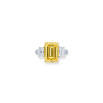 3 Stone Yellow Emerald Cut Lab Grown Diamond Ring, Fancy Intense Yellow & White Diamond Engagement Ring