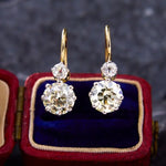 Antique Old European Cut Lab Grown Diamond Drop Earrings in 18K Gold, Vintage Two-Stone Danglers