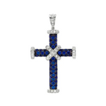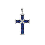 Blue Sapphire & Lab Grown Diamond Cross Pendant in White Gold, Religious Spiritual Pendant