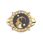 Capricorn Zodiac Ring in Yellow Gold with Lab Grown Diamonds & Black Enamel | Astrology Statement Jewelry