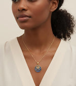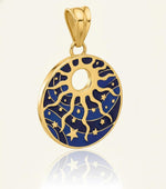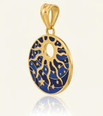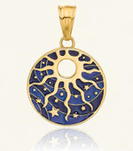 Celestial Blue Enamel Sun & Stars Pendant Necklace in Universal Energy Yellow Gold Everyday Necklace