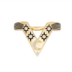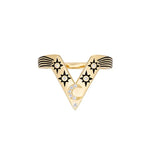 Celestial V-Shape Gold Ring with Lab Grown Diamond Moon & Starburst Design, Unique Astrology Statement Ring