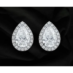 Pear Cut Halo Lab Grown Diamond Stud Earrings in 14K White Gold, Elegant Bridal Jewelry Gift for Women