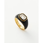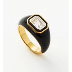 Emerald Cut Lab Grown Diamond Black Enamel Ring in Yellow Gold, Modern Bezel Set Statement Cocktail Ring
