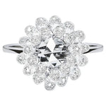 Floral Cluster Pear Drop Lab Grown Diamond Ring in 18K White Gold, Round Rose Cut Diamond Halo Engagement Ring