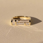 Geometric Baguette and Round Lab Grown Diamond Band Ring in Yellow Gold, Modern Statement Ring