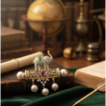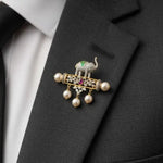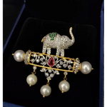 Heritage Elephant Brooch with Lab Grown Diamonds, Ruby, Emerald & Pearls in Yellow Gold Indian Jewelry