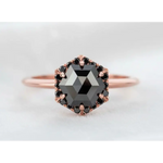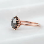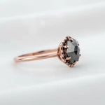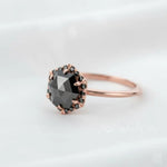 Octagon Black Diamond Engagement Ring in 14K Rose Gold, Unique Vintage Bridal Ring for Women