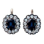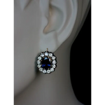 Oval Blue Sapphire and Lab Grown Diamond Halo Earrings in White Gold, Classic Cluster Anniversary Earrings