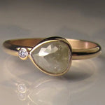 Rustic Pear Rose Cut Natural Diamond Engagement Ring in Yellow Gold with Round Accent Salt and Pepper Diamond