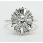 Starburst Tapered Baguette Lab Grown Diamond Cluster Ring in 18K White Gold, Vintage Round Cut Engagement Ring