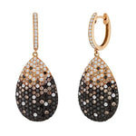 Teardrop Black, White, Champagne Natural Diamond Pavé Earrings in 18K Yellow Gold, Elegant Drop Earrings