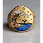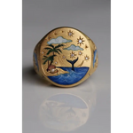 Tropical Island Enamel Gold Signet Ring with Lab Grown Diamonds | Artistic Beach-Inspired Ring