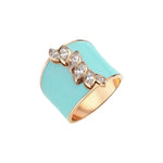 Turquoise Enamel Wide Band Ring with Marquise Lab Grown Diamond in Yellow Gold, Statement Cocktail Ring