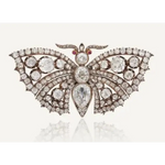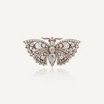 Victorian Butterfly Lab Grown Diamond Brooch with Ruby Eyes, Antique Silver Gold Collectible Fine Brooch